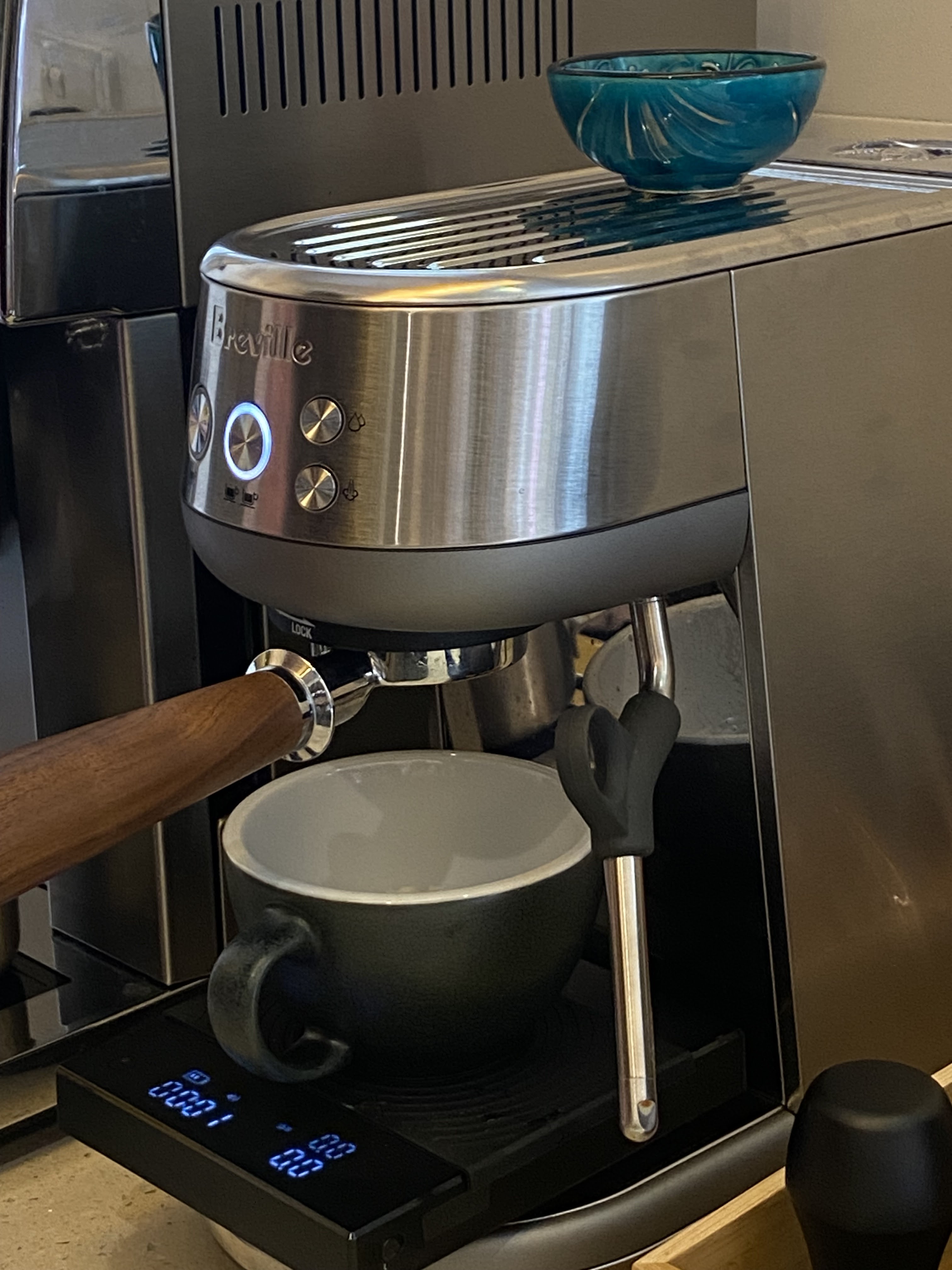 大家輪住泡咖啡,第一次拉花既我,勉強看到有小小圖案,圖案像一朵花,而今天正值黃雨,圖中的花像吹散了一些花瓣,只剩下花框和葉子😂😂